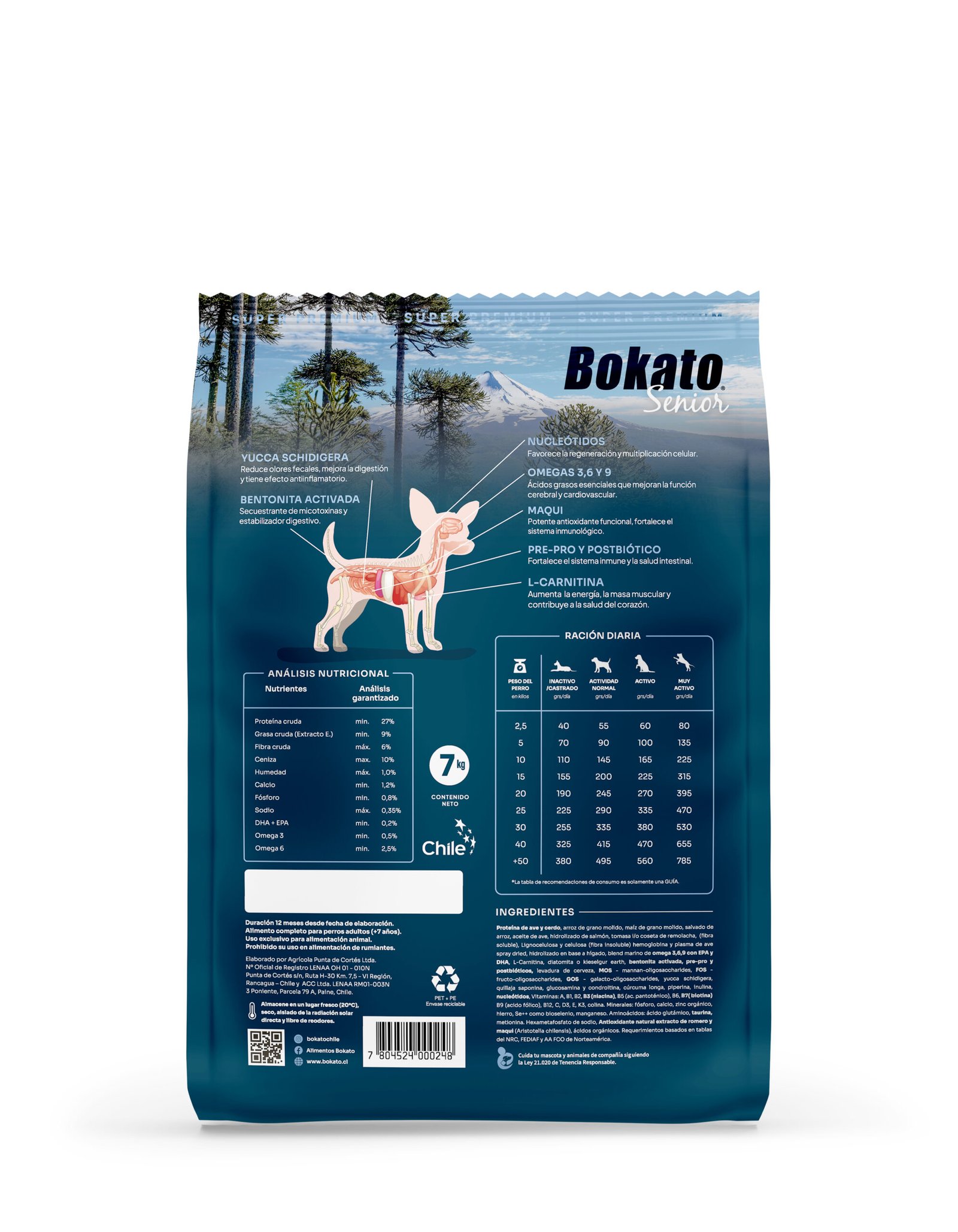 Equilibrio óptimo de vitaminas y minerales esenciales, Bokato Senior aporta soporte inmunológico, salud ósea, mejor calidad de piel y mayor vitalidad diaria. Su contenido controlado de grasas, junto con ingredientes de alta calidad y fibras funcionales, lo convierte en una opción ideal para perros adultos mayores que requieren una nutrición completa, sustentada y adaptada a su nueva etapa de vida.